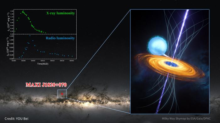 The researchers made the discovery while conducting multi-wavelength observational studies of an outburst event of the black hole X-ray binary MAXI J1820+070, using Insight-HXMT, China’s first X-ray astronomical satellite, as well as multiple telescopes.